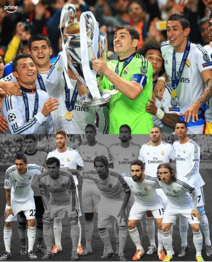 体育社媒账号Prime分享了一张皇马“2014年欧冠决赛夺冠”的老照片。那场决赛的皇马首发阵容中,接近12年后仍有6名球员还在职业赛场继续踢球,引发球迷感慨。